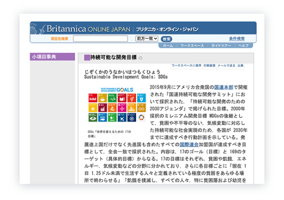 エキスパートにより執筆・監修された16万以上の百科事典項目と、厳選された外部ウェブサイトへのリンクを収録しています。あらゆる情報をすばやくわかりやすく引ける小項目事典や、世界各国・各分野の最先端の情報を学術的・体系的に理解できる国際年鑑など、信頼できる豊かなコンテンツは、レポートや発表などにも有用です。