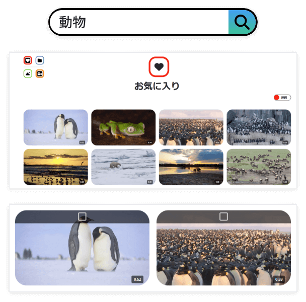 ブリタニカ・イメージクエストジュニアの検索バーに「動物」と入れて、「動画」のアイコンをクリックしよう